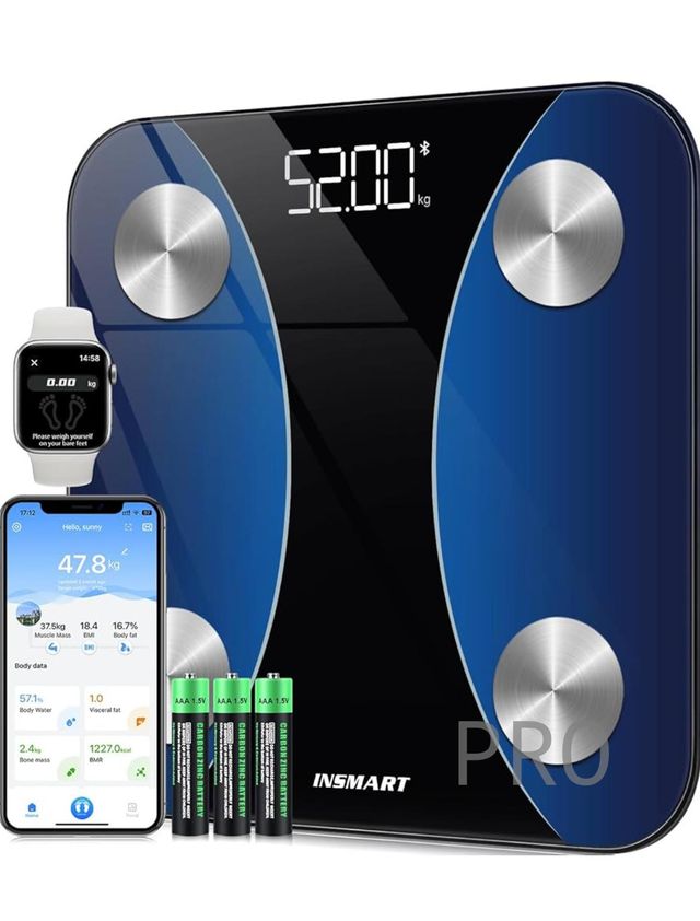 Báscula Grasa Corporal Bluetooth, INSMART Báscula Baño Digital con APP Inteligente, 13 Monitores de Composición Corporal, para Andriod y iOS, 180kg Negro