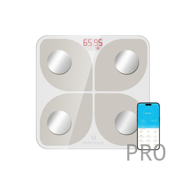 Detalles del productoBáscula Pesa Persona, Healthkeep Balanza Conectada Bluetooth Impedancia Pese Personas Alta Precisión con 13 Medidas Corporales APP Para Android e iOS, Capacidad 180kg/400lb, 28x28cm