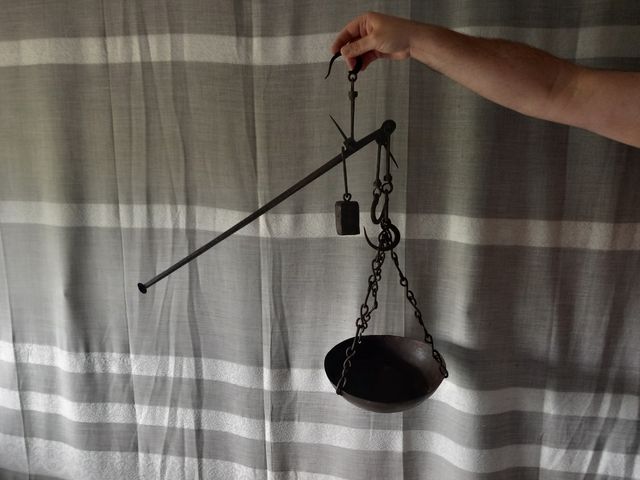 Detalles del productoBáscula romana de metal, ideal para coleccionistas o decoración.