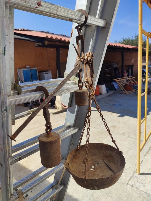 Báscula romana antigua de hierro con su contrapeso. Ideal para coleccionistas o decoración. No se envía. - Material: Hierro. - Incluye contrapeso.