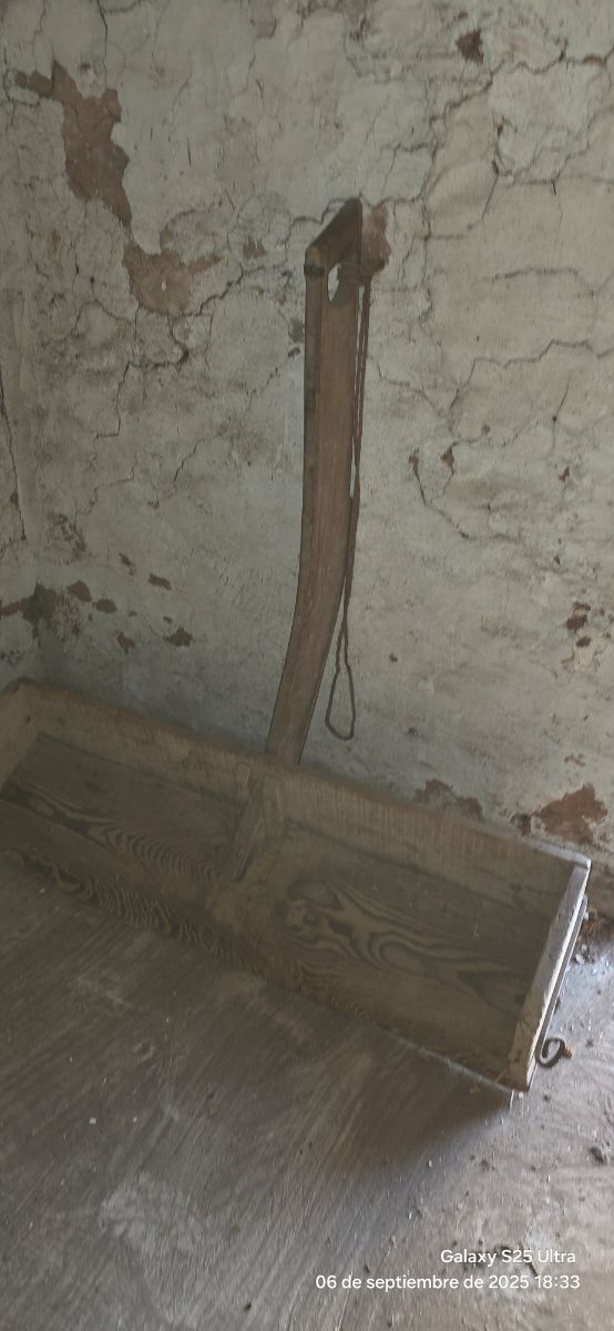 Báscula antigua de plataforma fabricada en madera. - Estructura de madera. - Diseño de plataforma.