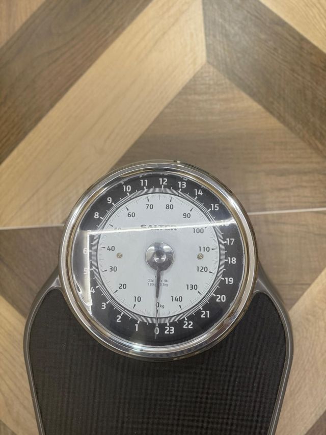 Detalles del productoBáscula mecánica de la marca Salter con dial analógico.