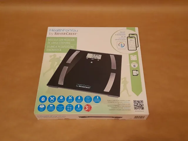 Detalles del productoBáscula digital Silvercrest HealthForYou con medición de grasa corporal.