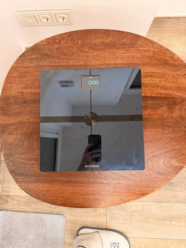 Báscula digital Withings con acabado en cristal negro. - Pantalla digital. - Diseño moderno y elegante.