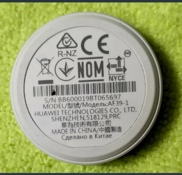 Base de carga magnética original de Huawei, modelo AF39-1. - Certificación CE, R-NZ, NOM y NYCE. - Fabricado en China.