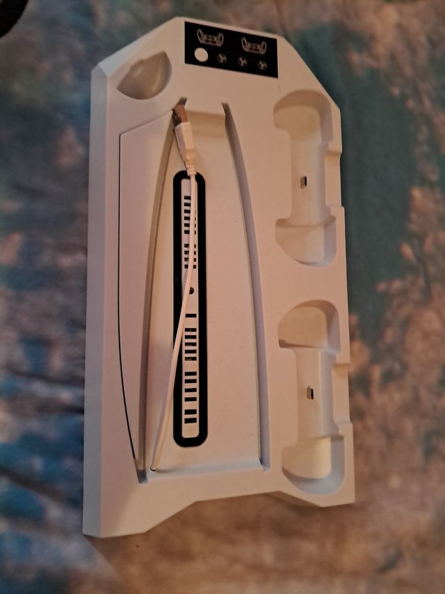 Base de carga para mandos de PlayStation 5. Permite cargar hasta cinco mandos simultáneamente. - Diseño blanco. - Incluye cable USB.