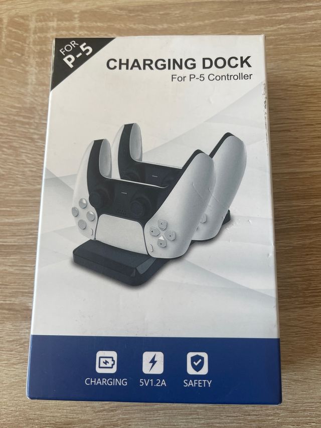 Base de carga para dos mandos de PS5. Permite cargar dos mandos simultáneamente. - Carga rápida 5V/1.2A. - Diseño seguro.