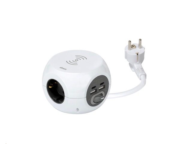 SIMON COMBIBALL - Base de Enchufe Múltiple, Regleta de Enchufes con USB, 8 Tomas de Carga, Ladrón de Enchufes con Interruptor, Carga Inalámbrica Smartphones, Color Blanco
