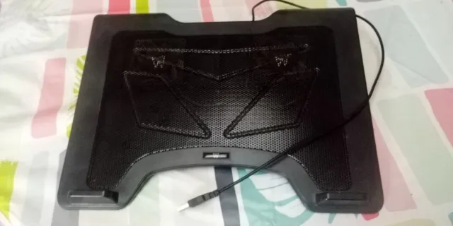 Base enfriadora para portátil con diseño de rejilla. - Superficie de malla metálica. - Bordes de plástico negro. - Cable de conexión USB.