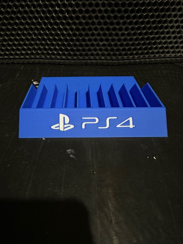 Base organizadora azul para juegos de PS4. - Diseño moderno y compacto. - Fabricada en plástico resistente. - Ideal para mantener tus juegos ordenados.