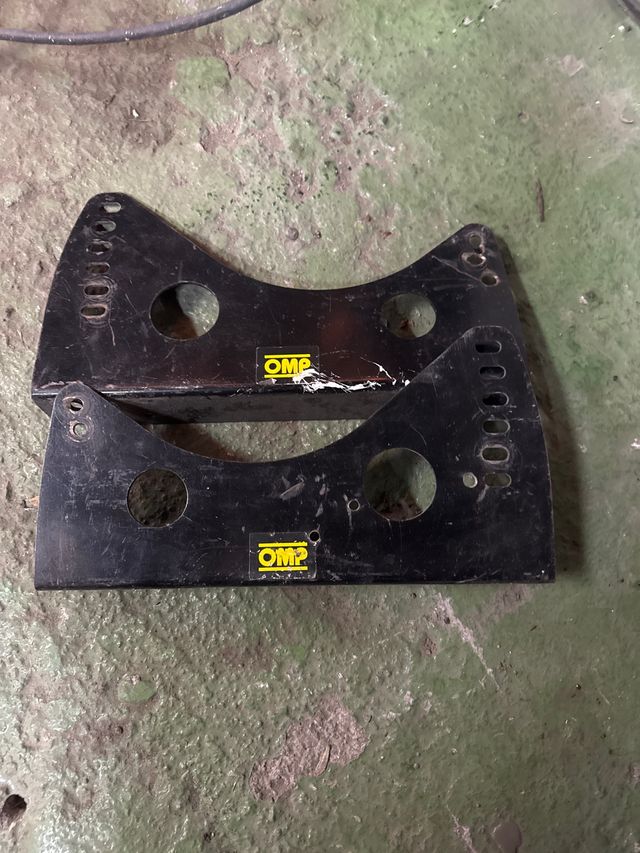 Se venden bases OMP para baquet. Piezas de metal negro con el logo de la marca. - Fabricadas en metal. - Color negro. - Logo OMP visible.