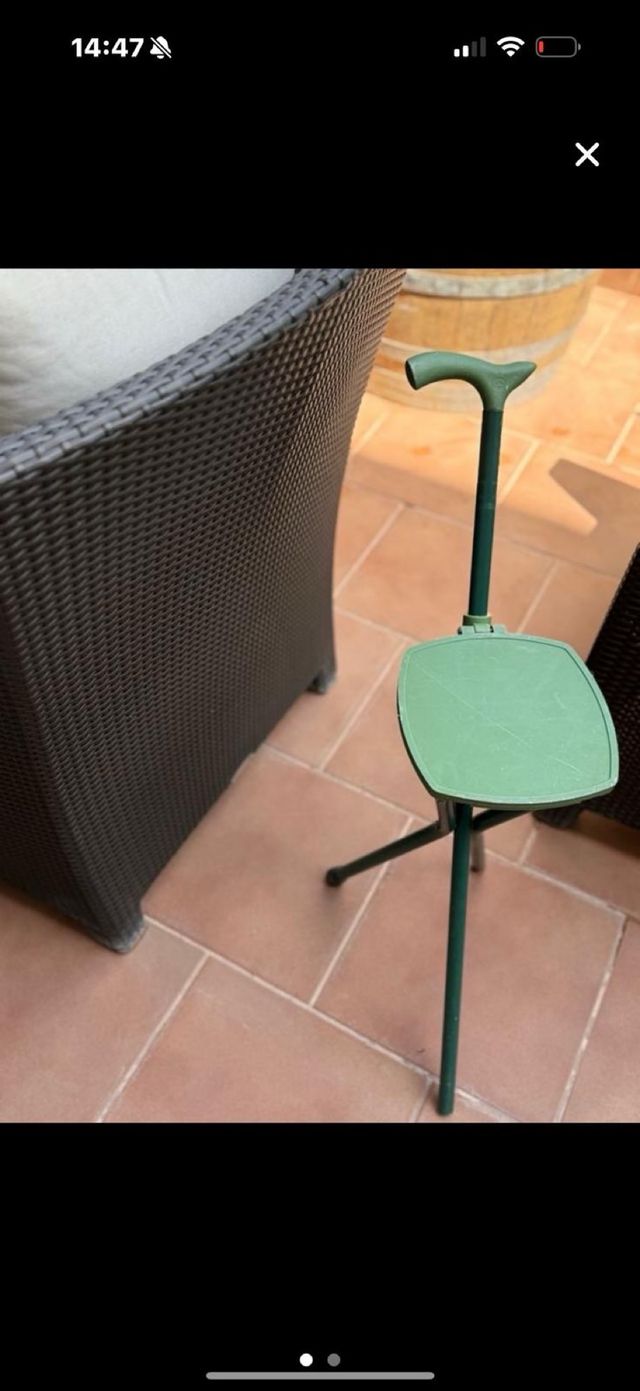 Detalles del productoBastón funcional que se convierte en un asiento portátil. Ideal para descansar en cualquier lugar.