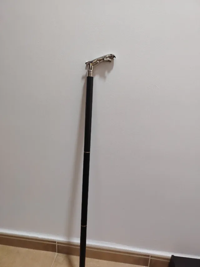 Detalles del productoElegante bastón con un diseño distintivo. Su empuñadura tiene la forma de una cabeza de jaguar detallada, aportando un toque de sofisticación.