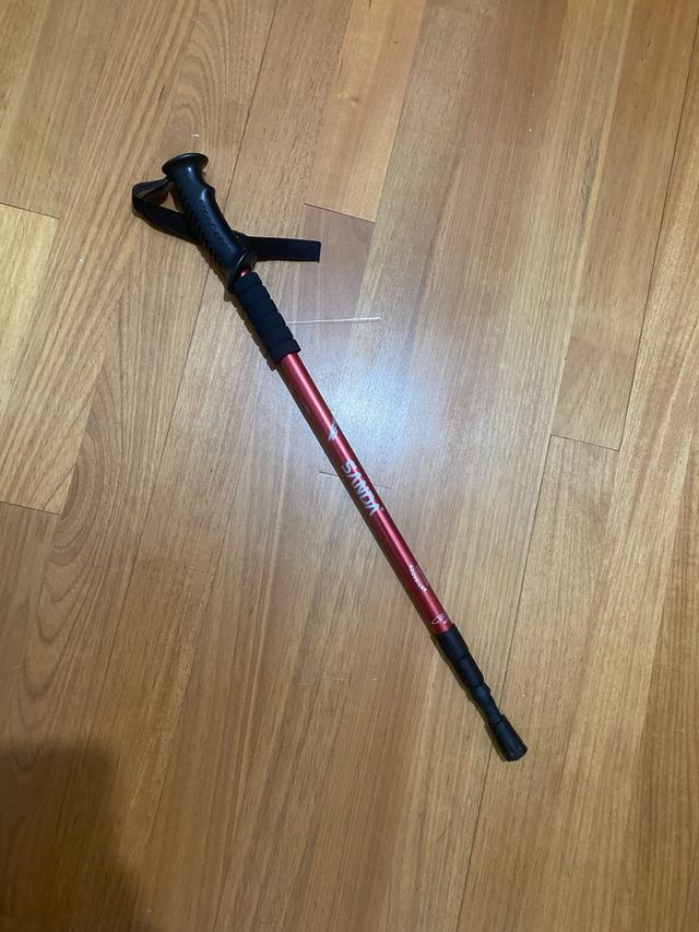 Detalles del productoBastón de trekking de aluminio en color rojo. Es ligero y resistente, ideal para tus rutas de senderismo.