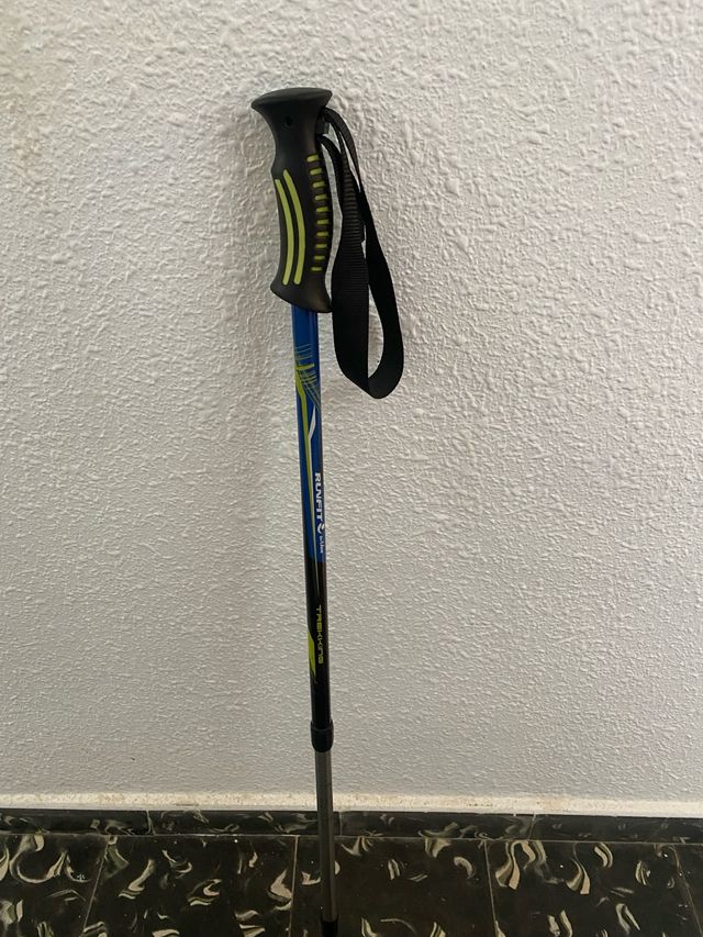 Bastón de trekking de la marca Runfit, modelo Trekking. - Mango ergonómico de goma. - Correa ajustable. - Diseño en color azul y verde.
