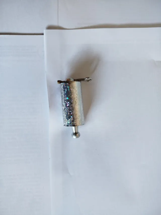 Bastón extensible plateado con acabado brillante. - Diseño compacto y ligero. - Mecanismo de extensión.