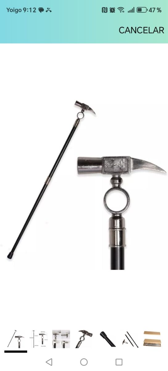 Detalles del productoBastón con diseño de martillo en la parte superior.