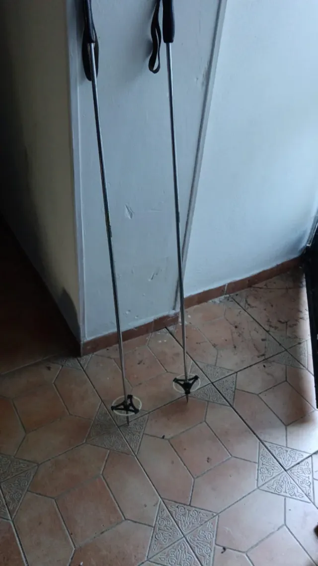 Par de bastones de esquí. - Mangos ergonómicos. - Puntas afiladas para mayor agarre. - Diseño ligero y resistente.