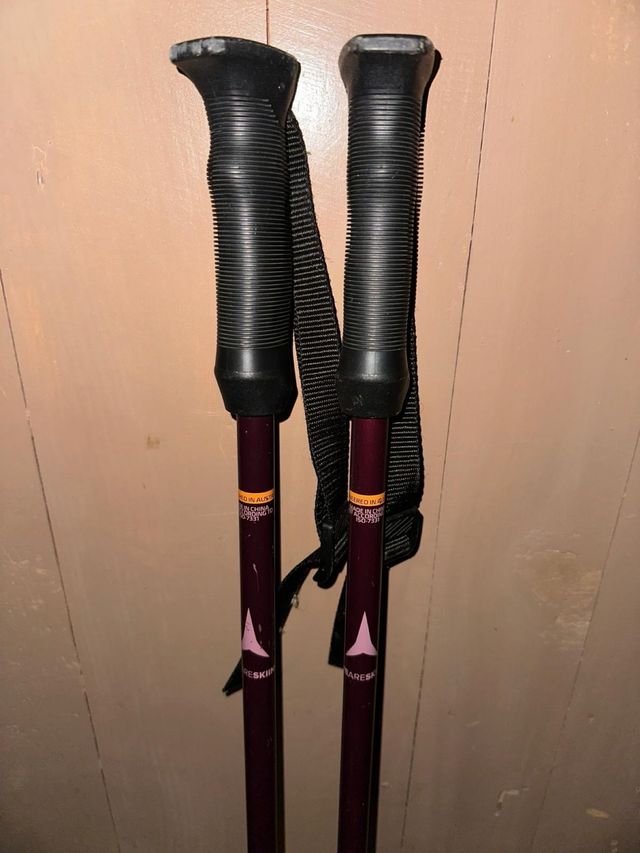 Par de bastones de esquí de color burdeos con empuñaduras negras. ATOMIC 115cm Usado muy poco Son ligeros y comodos