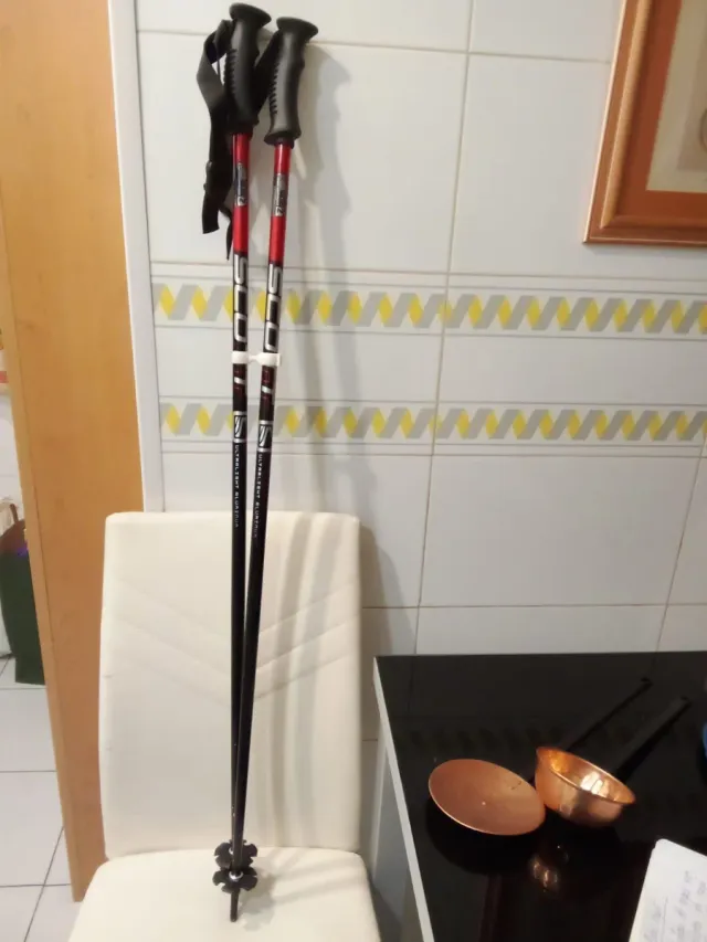 Bastones de esqui de 110 cm en aluminio ultraligero marca SCOTT , serie 2 , en rojo y negro. Con pinza para llevarlos unidos. En perfecto estado.