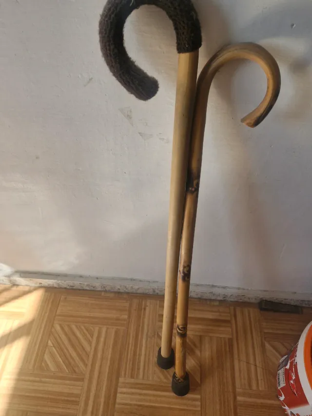 - El otro bastón tiene una empuñadura de madera natural.