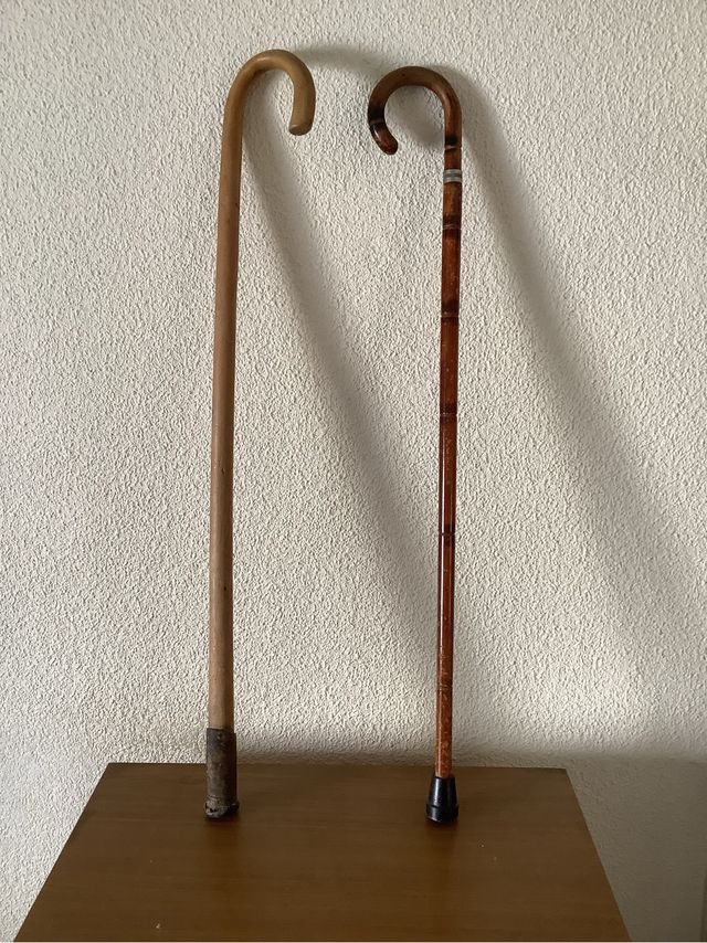 Detalles del productoDos bastones de madera con diseños clásicos.