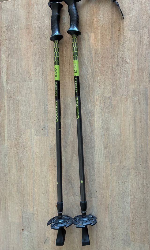 Detalles del productoPar de bastones de senderismo Quechua Arpenaz 200 material aluminio. Regulables de 115 a 140 cm. Recogidos tienen un largo de 80 cm incluyendo empuñaduras.