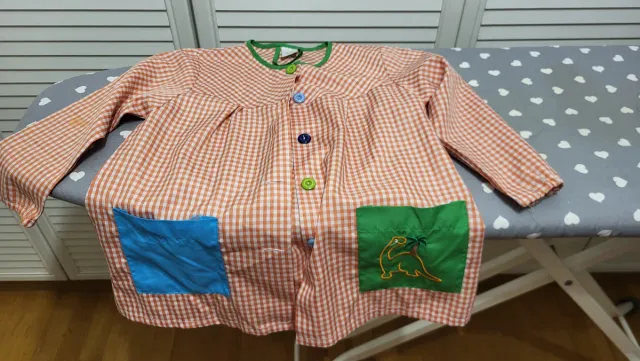 Detalles del productoBata escolar para niñ@ con estampado de cuadros en naranja y blanco. Ideal para el colegio o actividades.