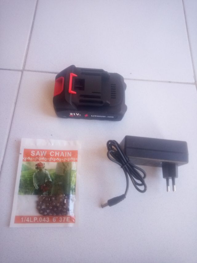 Se vende lote de accesorios para herramientas. - Batería de litio de 21V. - Cargador de la bateria. - Cadena para motosierra de 6 o 4 pulgadas.