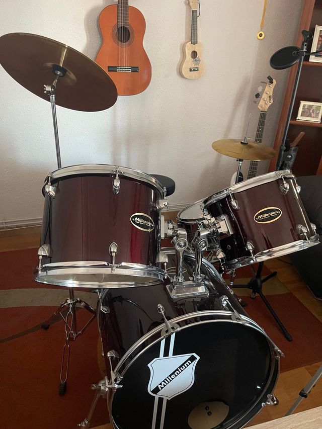 Detalles del productoBatería acústica de color burdeos, ideal para iniciarse en la música.