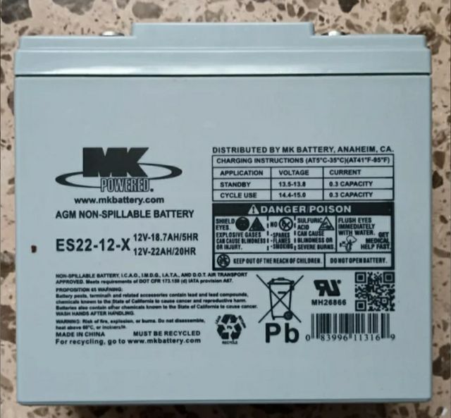 Detalles del productoBatería AGM 22Ah 12V MK Powered. Completamente nueva, no tiene ningún uso. Se vende porque el periodo de devolución expiró. Envío por mensaje privado enlace del producto original para más información.