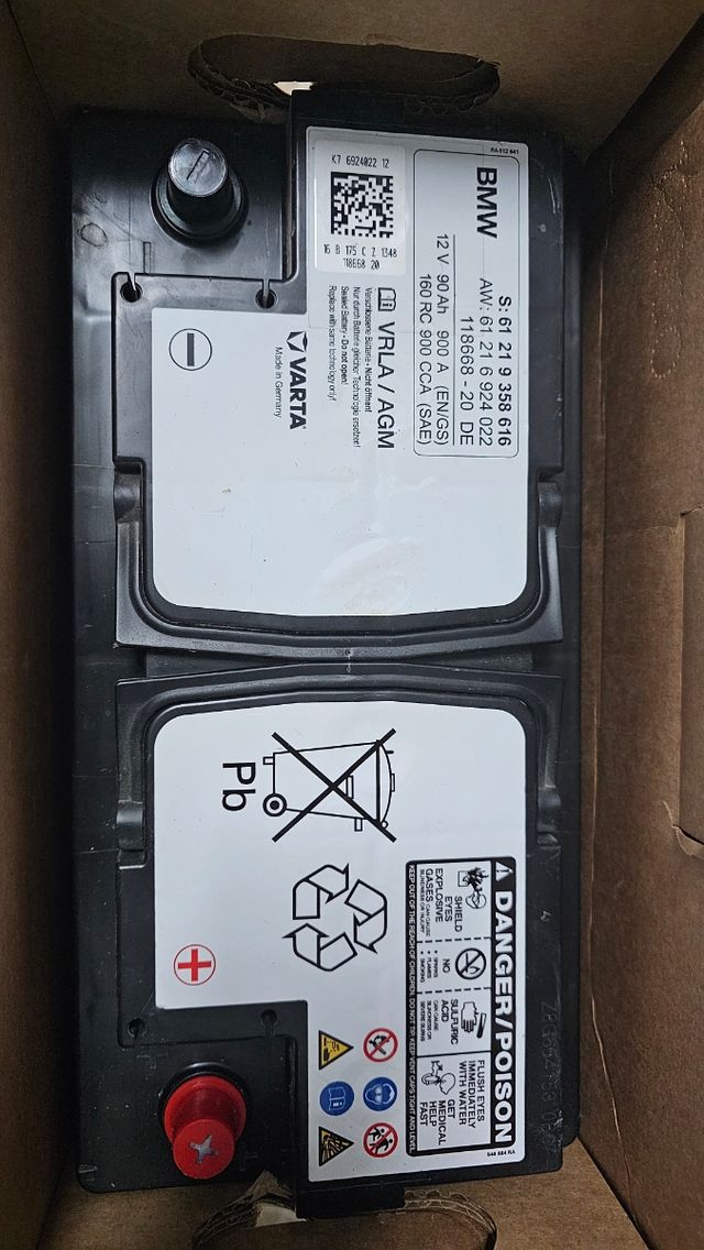 Batería de coche BMW AGM VARTA en buen estado. Es de un serie 5. - Modelo: VARTA VRLA/AGM. - Capacidad: 90Ah. - 12V.