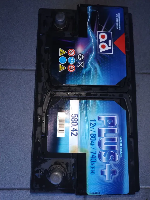 Batería de coche usada, en buen estado. - Voltaje: 12V - Capacidad: 80Ah - Corriente de arranque en frío (EN): 740A - Marca: Plus+ - Tipo: Calcio-Calcio
