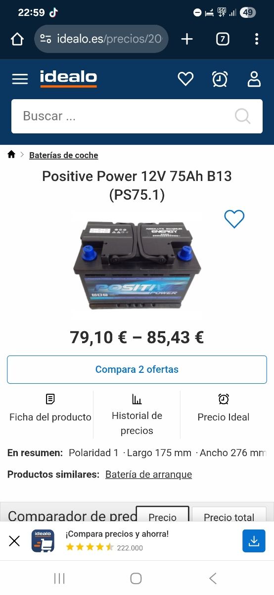 - Modelo: 12V 75Ah B13 (PS75.1)