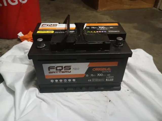 Detalles del productoBatería de coche FQS con capacidad de 75Ah y 700A de arranque.