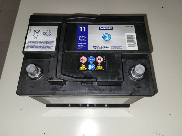 Batería de coche Norauto en buen estado. - Voltaje: 12V - Capacidad: 60Ah - Corriente de arranque en frío (EN): 540A - Garantía: 3 años