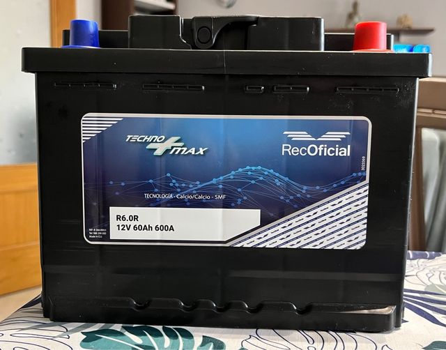 Batería de coche Techno+Max R6.0R. - Voltaje: 12V - Capacidad: 60Ah - Corriente de arranque en frío: 600A - Tecnología: Calcio/Calcio-SMF - Fabricada en la UE.