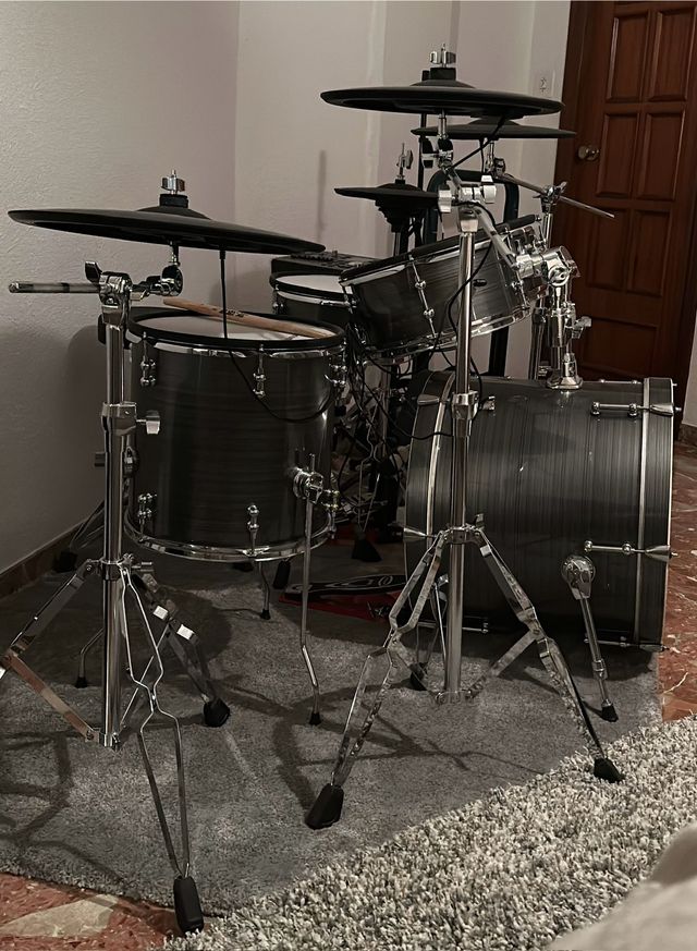- Incluye bombo, caja, toms y platos.