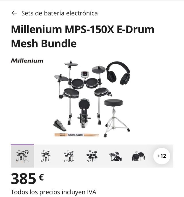 Detalles del productoBatería electrónica Millenium MPS-150X E-Drum Mesh Bundle.