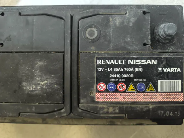 Batería de furgoneta de la marca Varta Modelo L4 con 85Ah y 760A. Descargada - Fabricada en España. - Dimensiones: 12V. - Fecha de fabricación: 17.04.13.