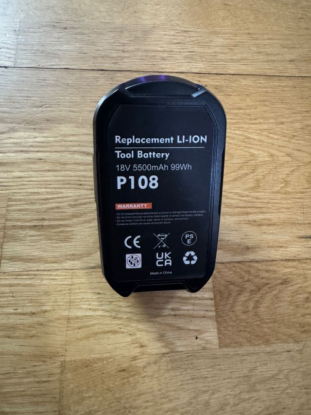 Batería de repuesto para herramientas eléctricas. - Tipo: Li-Ion - Voltaje: 18V - Capacidad: 5500mAh 99Wh - Modelo: P108 - Fabricado en China 1x 25€ 2x 40€