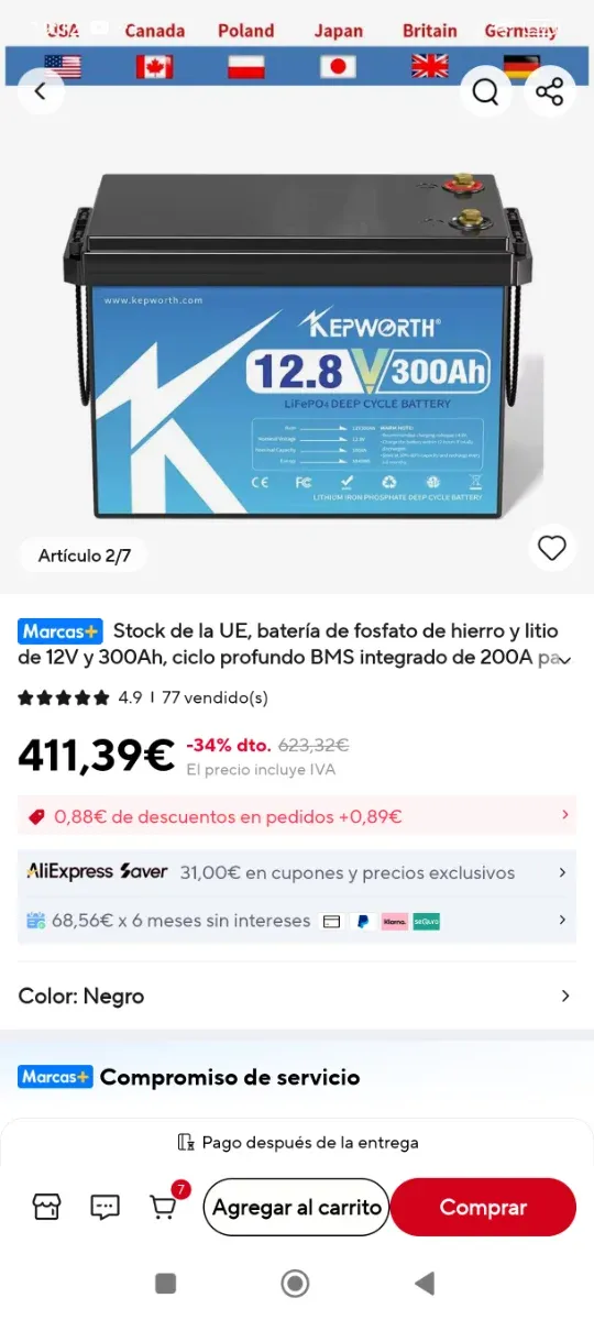 Batería Lifepo4 300Ah 12.8V (comprada por error)