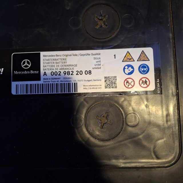 Batería original Mercedes-Benz para camión. - Referencia: A 002 982 20 08 - Fabricada en Alemania - Para arranque de motor