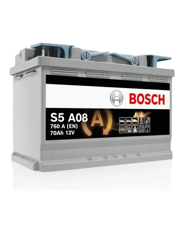 Detalles del productoBosch S5 A08 Batería para Coche 70 A/h - 760 A - 12 V, AGM de Plomo-Ácido para Vehículos con Sistema Start/Stop, Polaridad Izquierda (-) Derecha (+), para Autos con Alta Demanda Eléctrica
