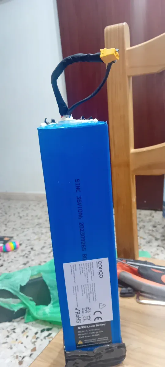 Batería de litio para patinete Cecotec M40 - Modelo: SINC 36V10Ah. - Voltaje nominal: 36V. - Capacidad: 10Ah. - Conector amarillo XT60.