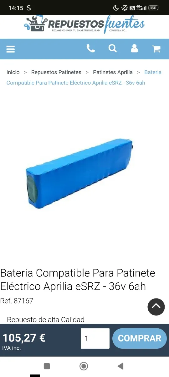 Batería de repuesto para patinete eléctrico. - Voltaje: 36v - Capacidad: 6ah - Color: Azul - Referencia: 87167