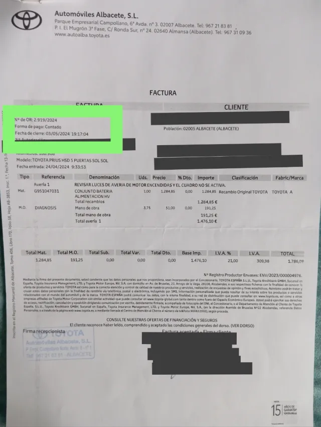 Condición: esperar que nos llegue el coche y venir a desmontar la batería.