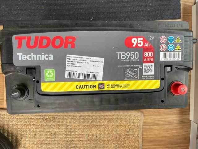 Detalles del productoBateria TB950 de 95ah de 800 amperios. Comprada y sin usar, ya que la averia no era de la bateria. Medidas 353x175x190mm Medidas del producto