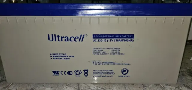 Detalles del productoBateria recargable VRLA de la marca Ultracell, modelo UC-230 -12 con 4 años de uso. Se vende por cambio a litio .