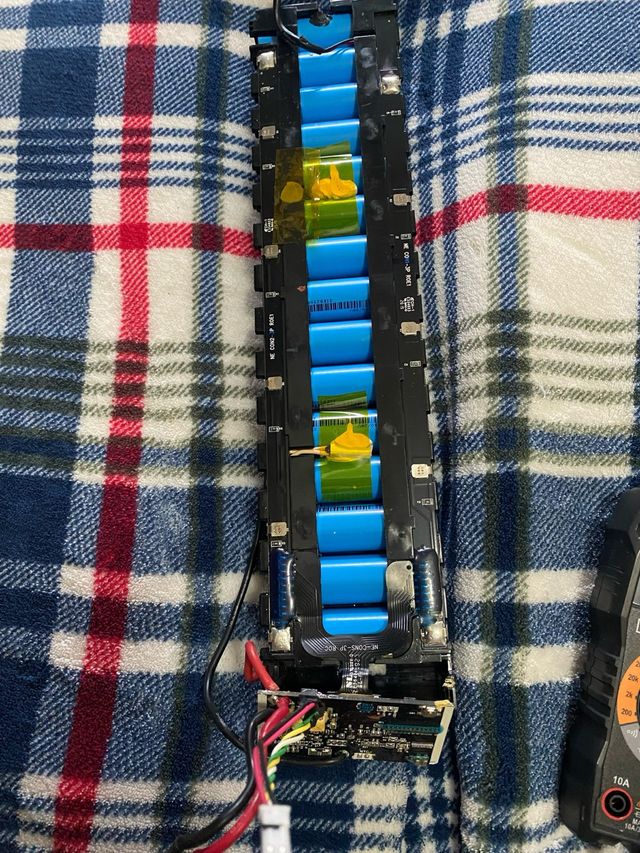 bateria a reparar de xiaomi , la bms debe de estar rota en el conector da 20v pero si mides el voltaje de la bateria da 40v lo que debe de dar
